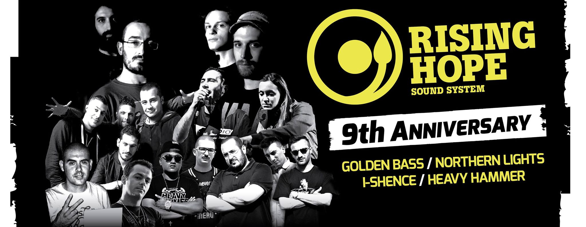 Rising Hope festeggia 9 anni di attività e lo fa nel migliore dei modi!!! Sabato 25 ottobre insieme a loro e Northern Lights ci saranno anche il sound veterano di Milano chiamto Golden Bass, “the italian beretta” I Shence ed il sound italiano più quotato a livello mondiale attualmente, dal salento Heavy Hammer.